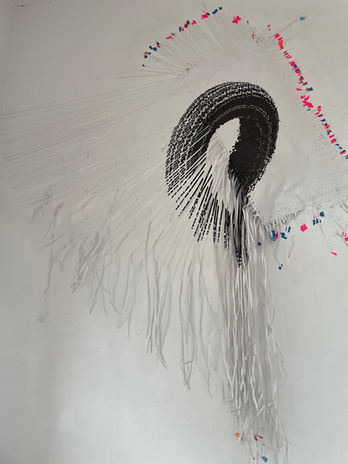 Michel Klöfkorn präsentiert keine "fertigen Werke", er lädt uns ein, an seinen Gedankenflächen teilzuhaben. Räumliche Zeichnungen, Texte, das Anaglyphenverfahren von 1853, Cyan-Rot-Brille werden im Supermarktwagen angeboten und versprechen einen zweidimensionalen Blick in denselben. Objekte und Skulpturen erscheinen gleichermaßen analog oder digital, groß oder klein, nah oder fern. Immer zeichnet sie ein hintergründiger Humor aus. Filmfragmente, werden im Raum erlebbar. Halten Sie Ihr Handy bereit.